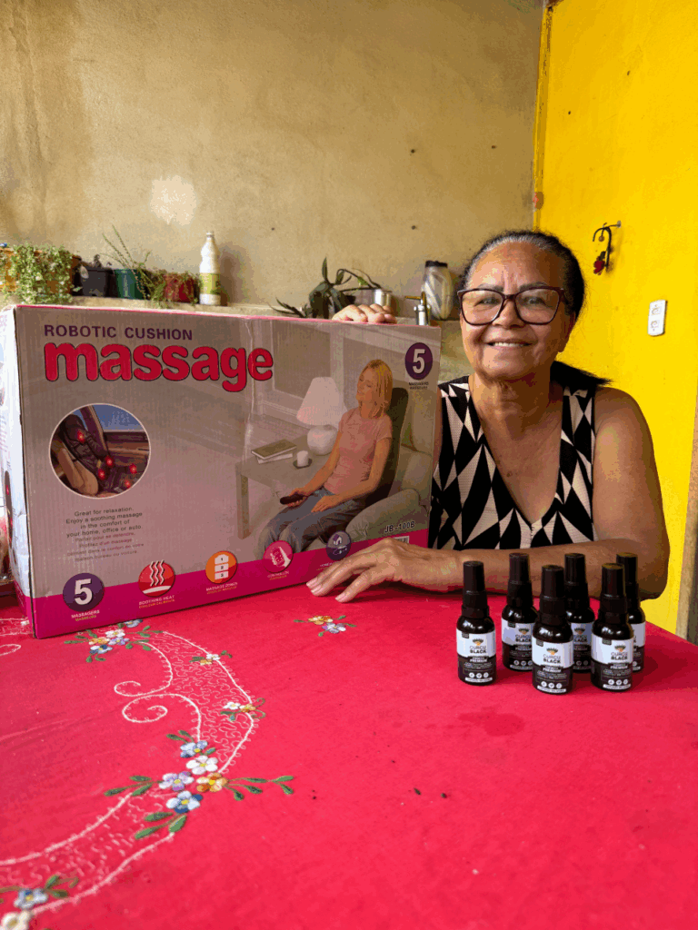 Quesia foi uma das ganhadoras da cadeira de Massagem, comprando um de nossos kits do CurcuBlack.